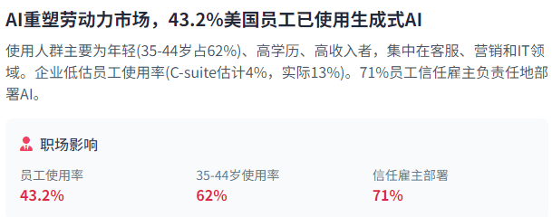 进一步鞭策AI手艺的普及和影响。现实采用仍存正在差距——只要78%的组织现实利用AI。Marc Benioff,71%的员工信赖其雇从以平安、负义务和的体例摆设AI东西。AI平安取立异之间的均衡将继续是环节挑和。